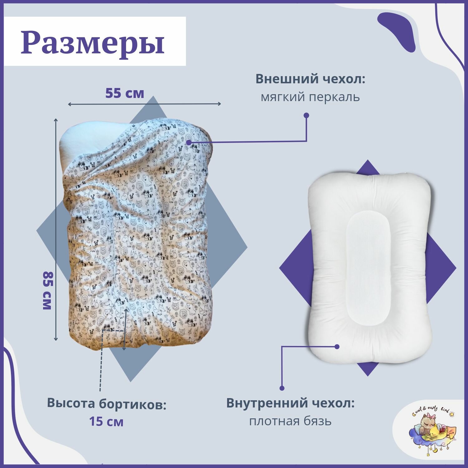 Кокон для новорожденных, позиционер гнездышко для сна малыша Owl&EarlyBird Облачко, Звери информация:
