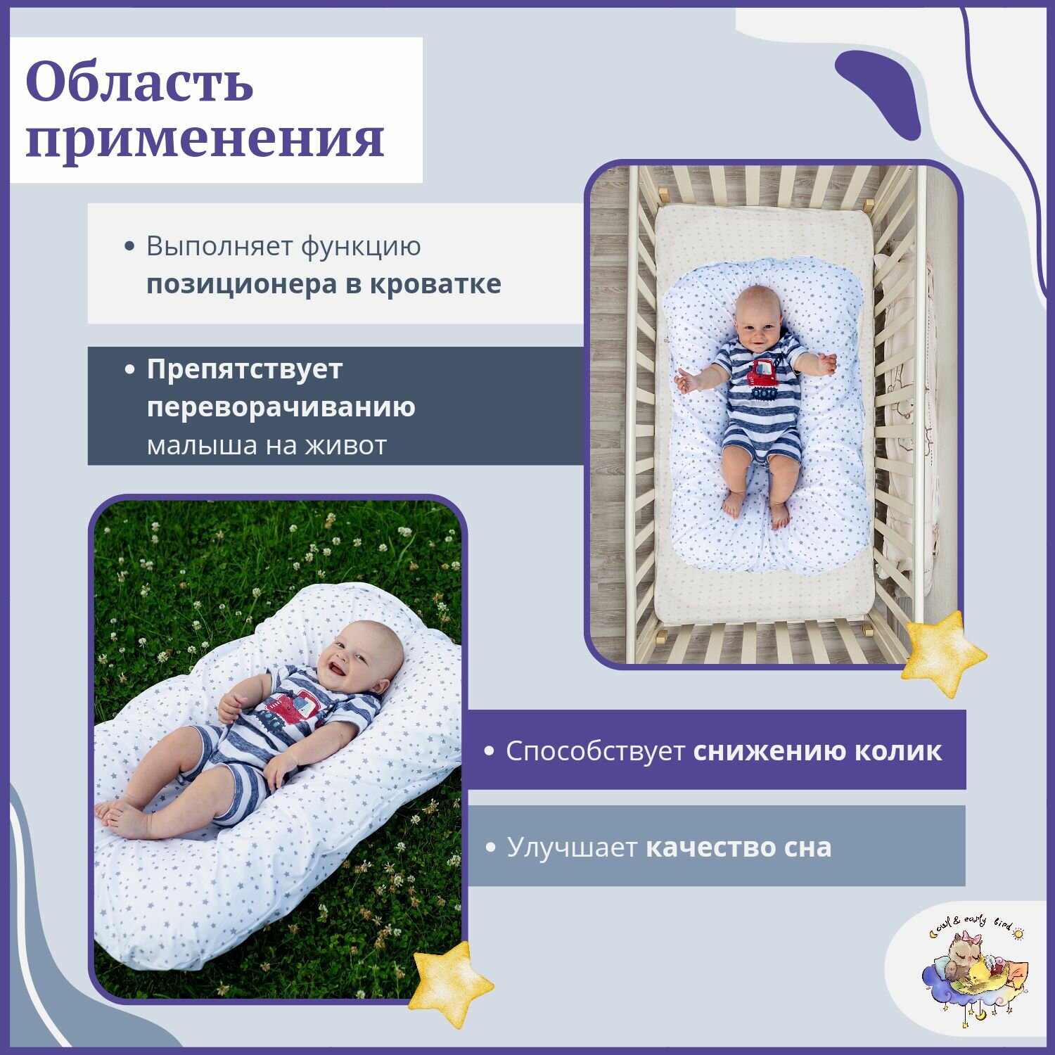Кокон для новорожденных, позиционер гнездышко для сна малыша Owl&EarlyBird Облачко, Звездочки информация: