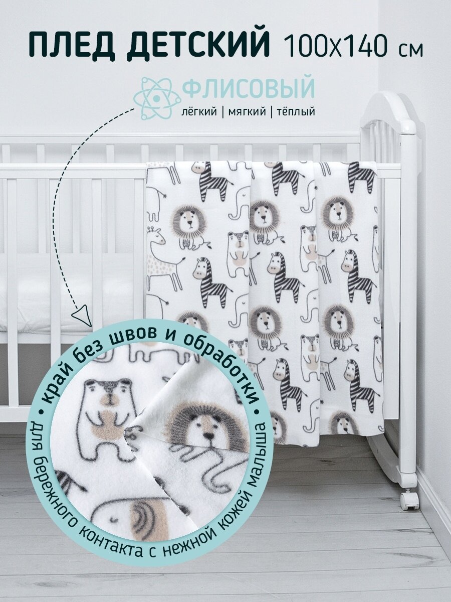 Отзывы на Плед для новорожденного 100х140 флисовый детский Tessolo Home "Африка", серый