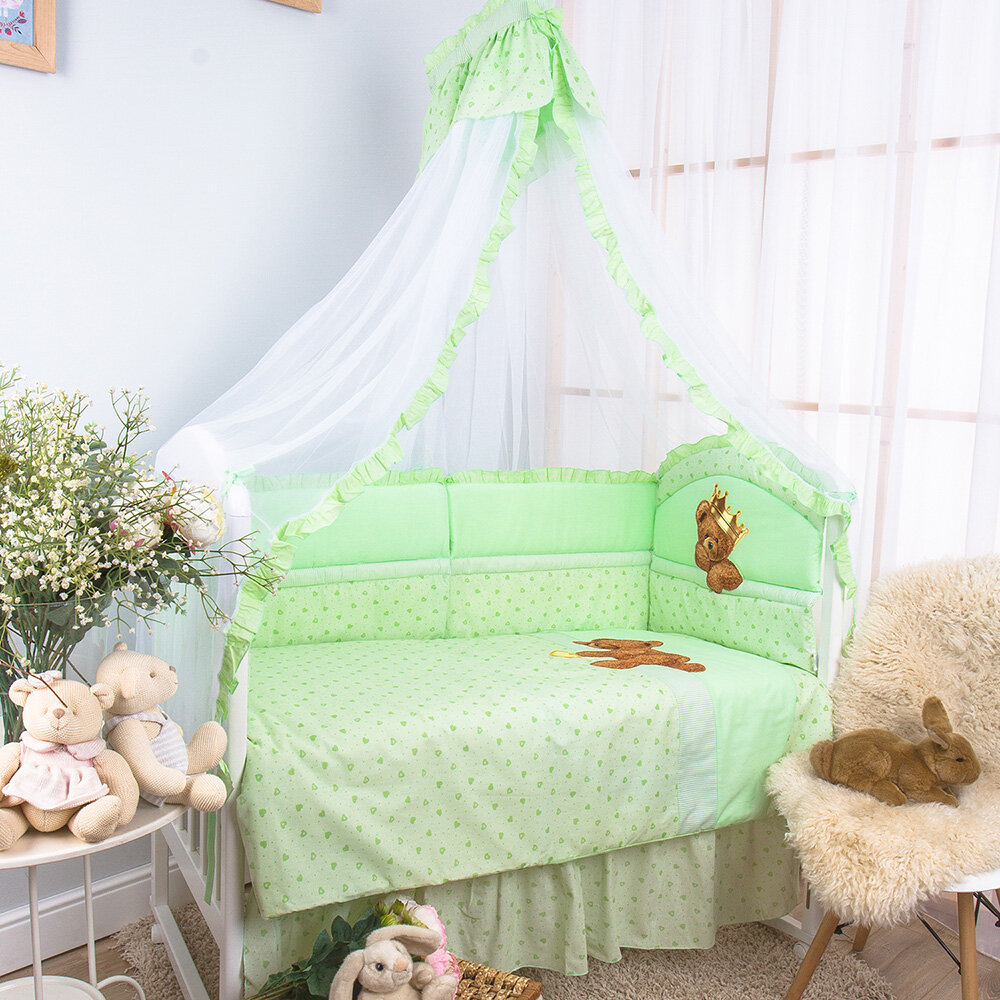 Отзывы на Комплект бортики в кроватку новорожденного для девочки и для мальчика "Мишка-Царь" (1084 зеленый)
