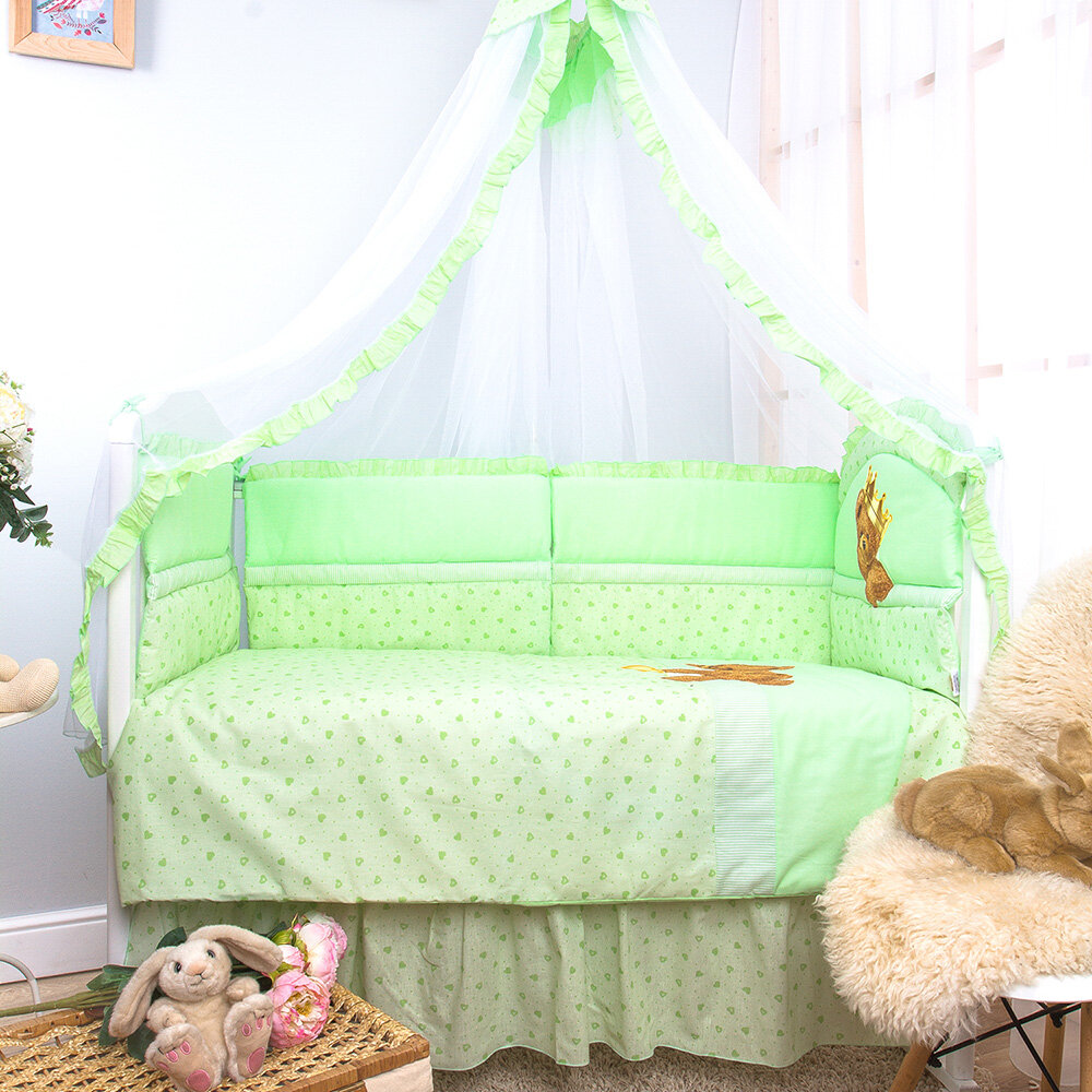 Комплект бортики в кроватку новорожденного для девочки и для мальчика "Мишка-Царь" (1084 зеленый) информация: