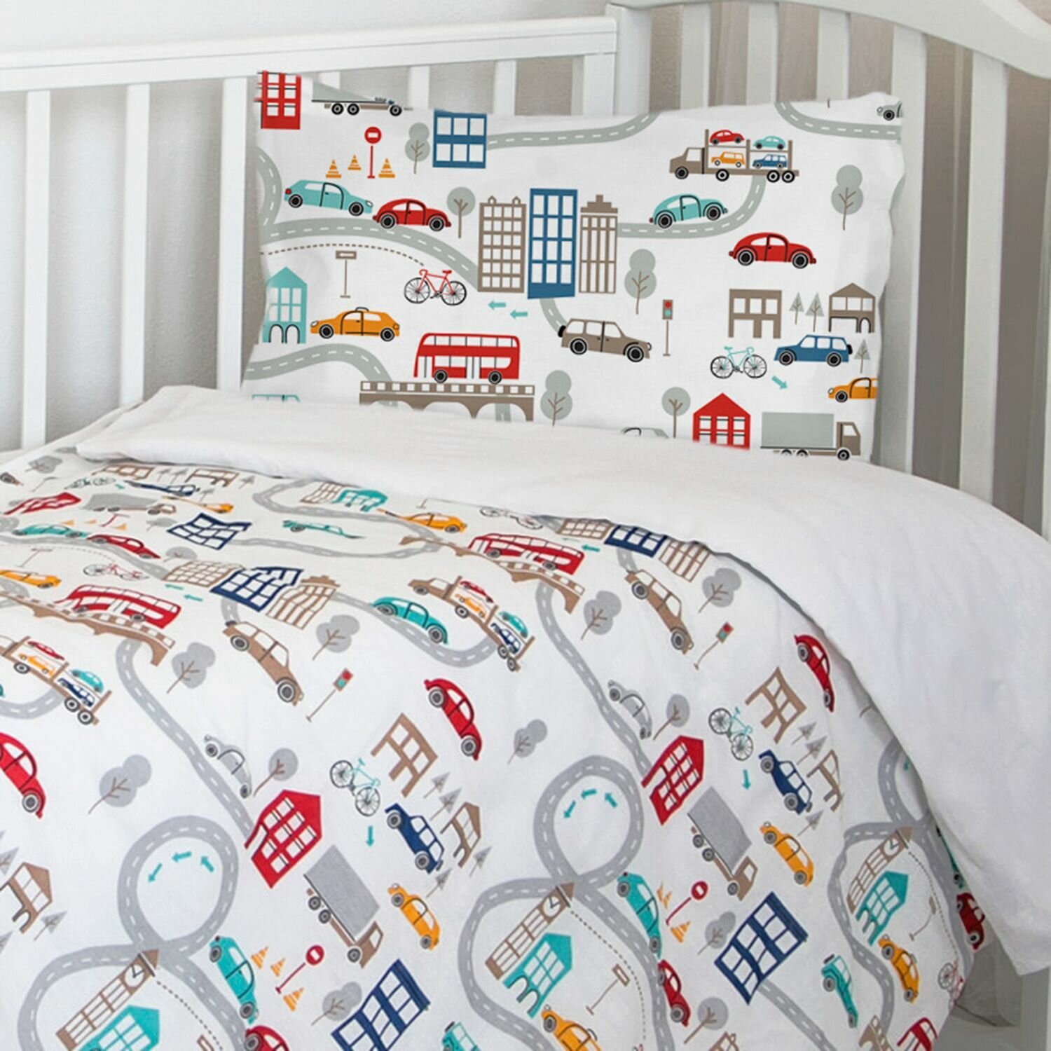 Постельное белье детское 1 спальное 160х80 Поплин "Город" Комплект постельного белья для мальчиков