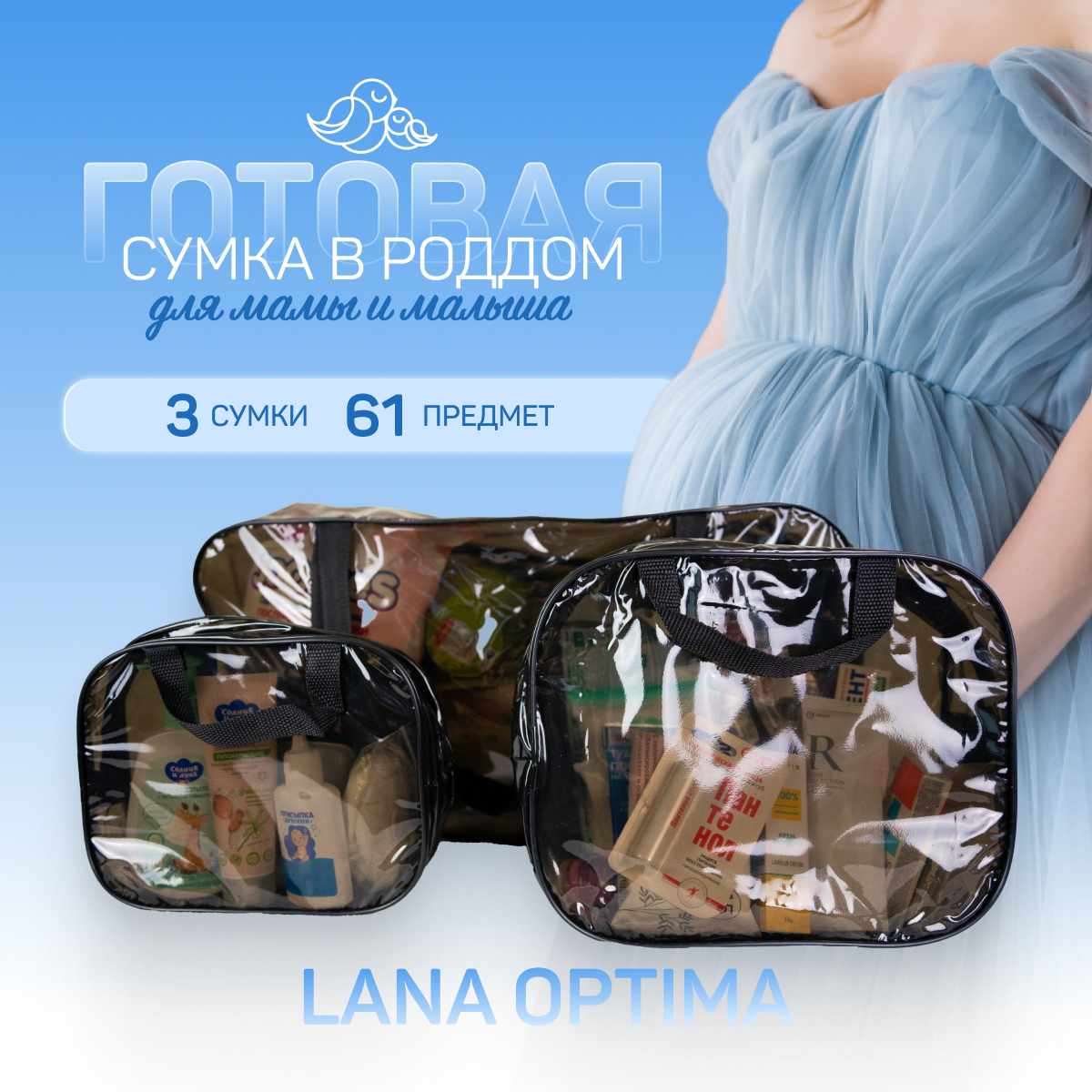 10 цен на Сумка в роддом готовая для мамы и малыша с наполнением, Lana Optima, 61 предмет, черная
