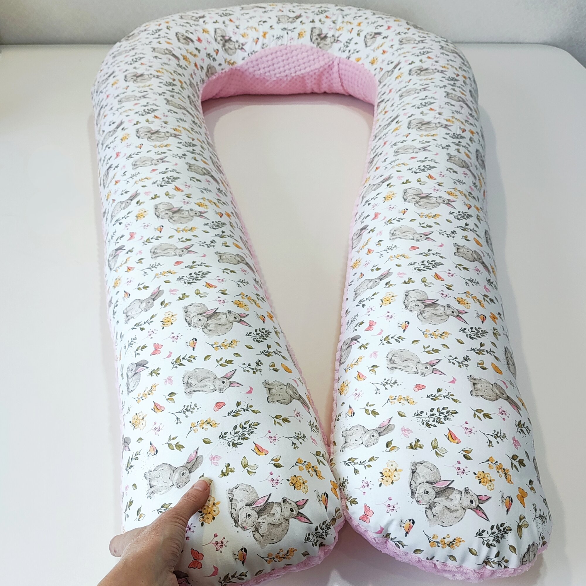 Подушка для беременных и не только , для сна U, плюш + хлопок, зайчики на бежевом 4 950 ₽