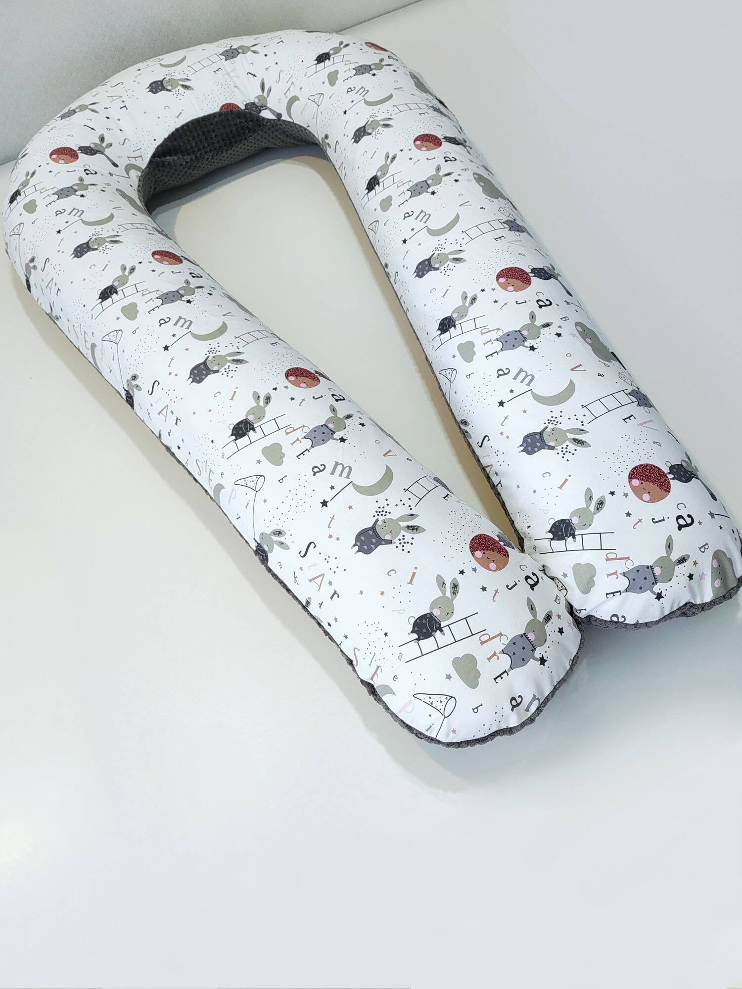 Подушка для беременных U с хлопком, сатин- 100% хлопок, зайки на сером 4 600 ₽