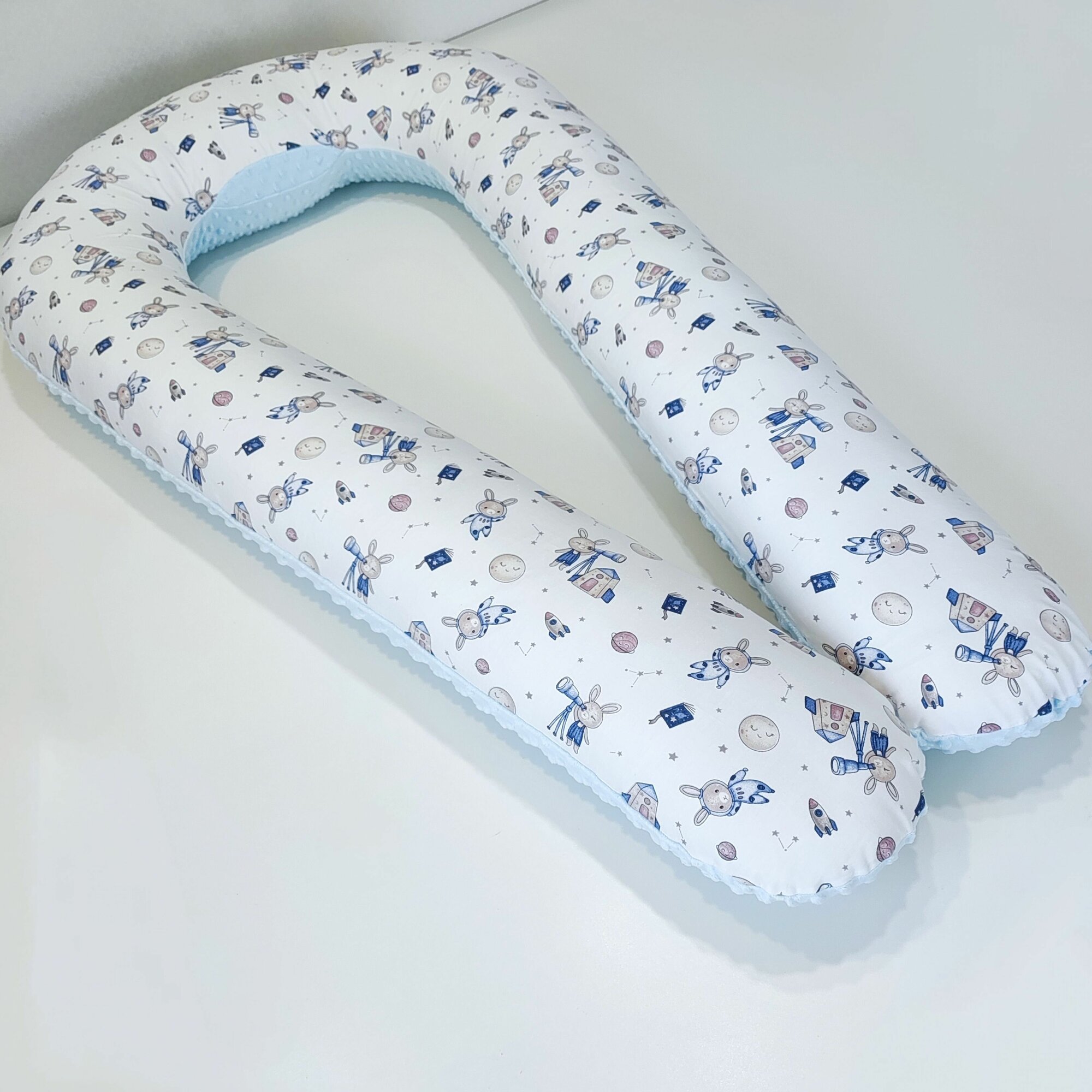 Отзывы на Подушка для беременных 80*150 см, с голубым плюшем , зайки с телескопом