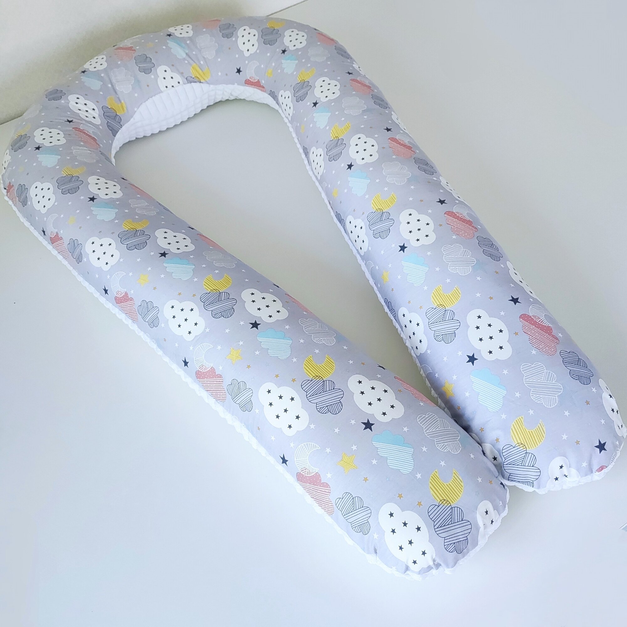 Подушка для всего тела, для беременных U, хлопок, сатин + плюш, облака на сером информация:
