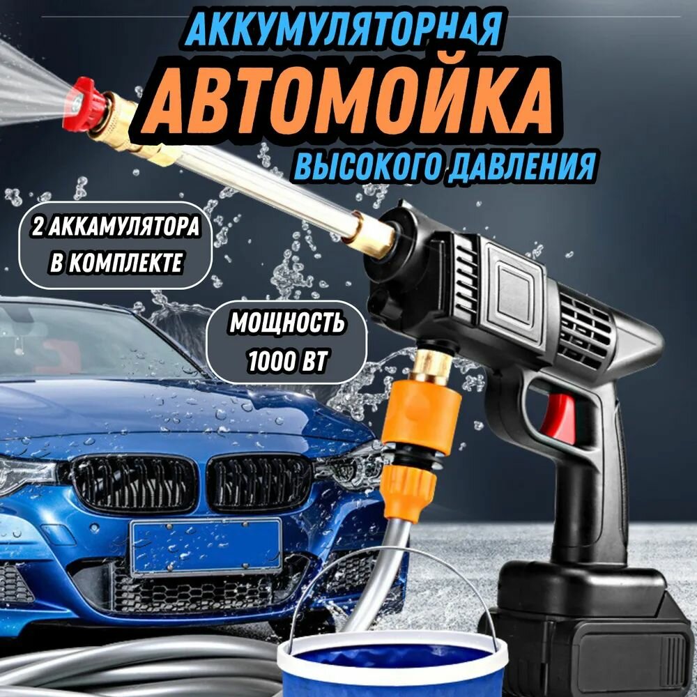 Мойка высокого давления, 1000Вт, два аккумулятора, для авто, с пенообразователем информация: