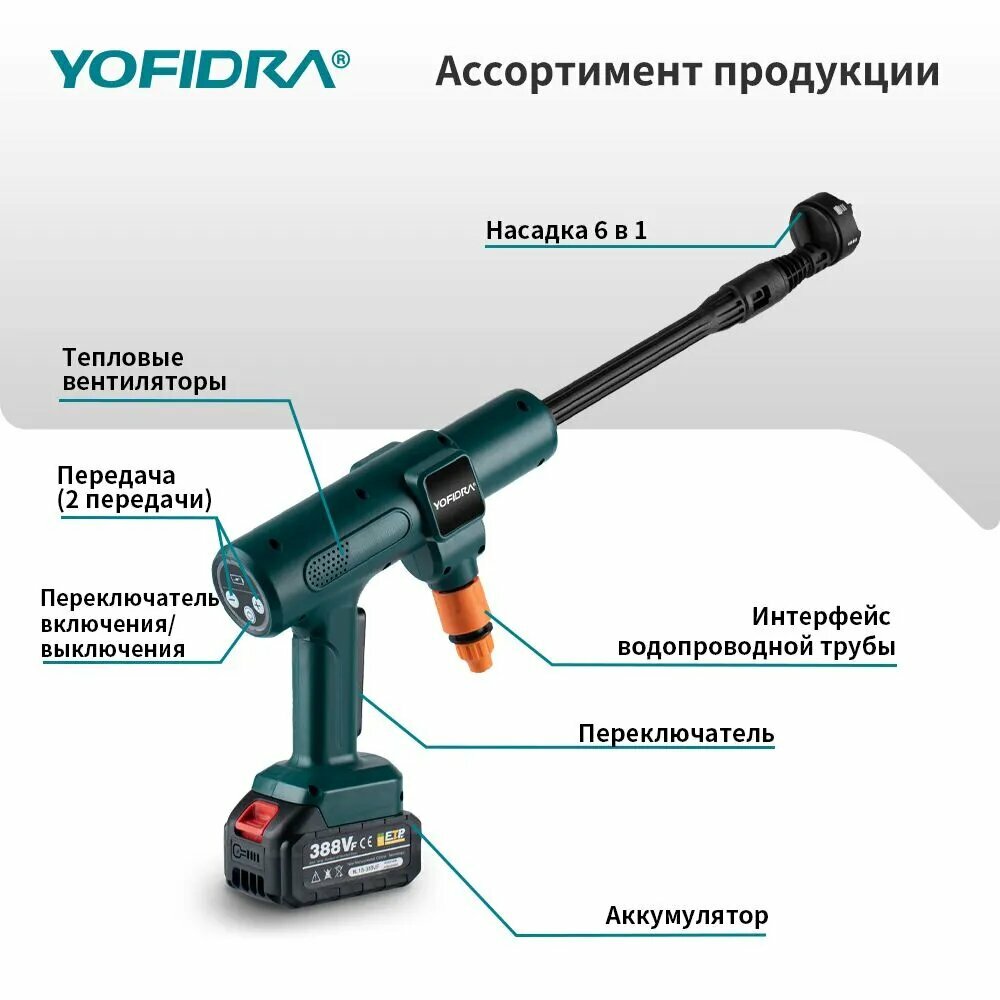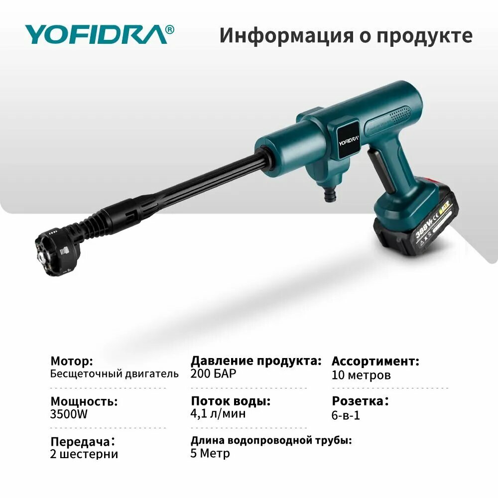Мойка высокого давления аккумуляторная, шланг длиной 5 м, грязевая фреза, 2 батарея 388vf, Портативная информация: