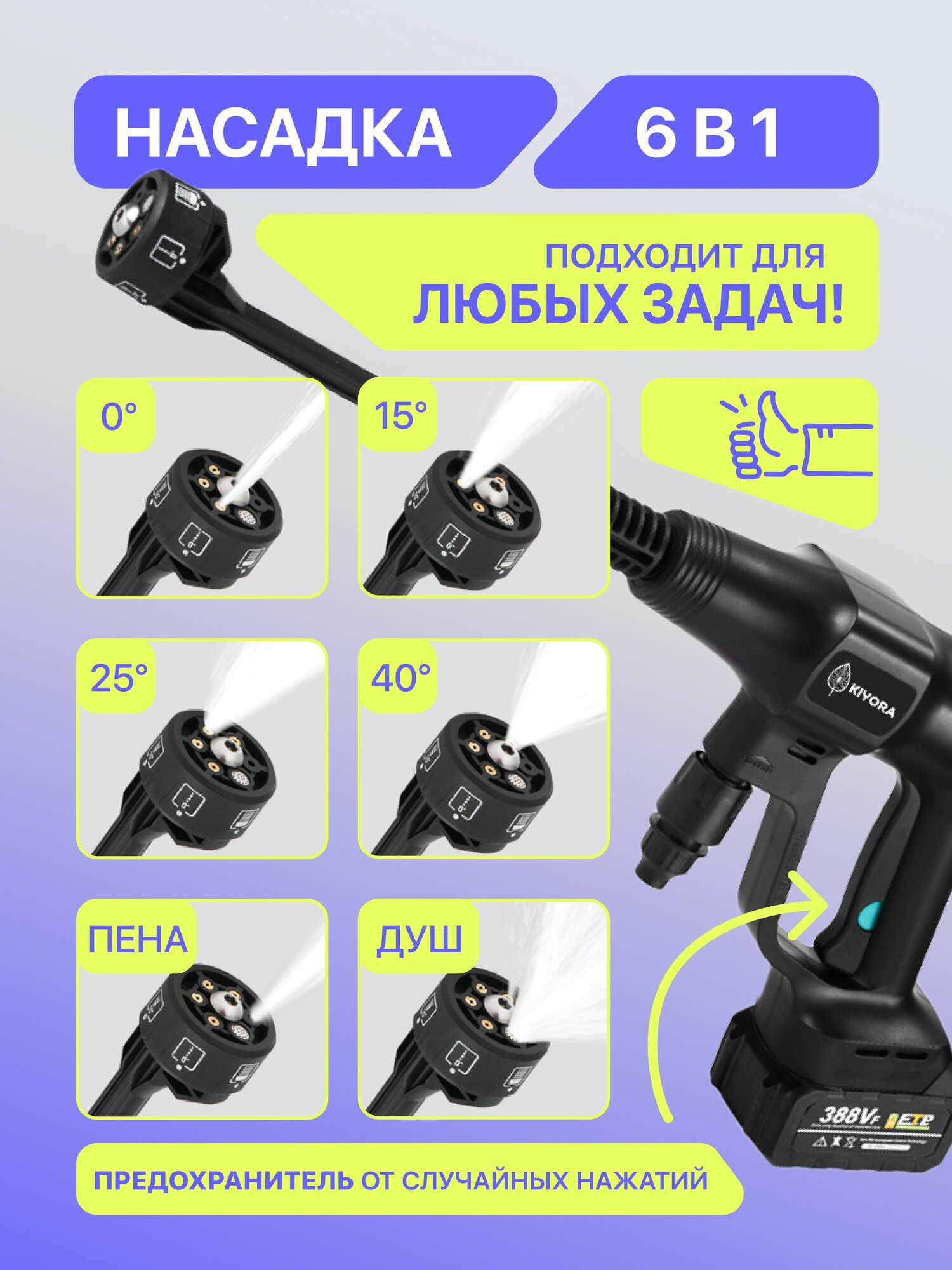Мойка высокого давления KIYORA черная, 2 аккумулятора информация: