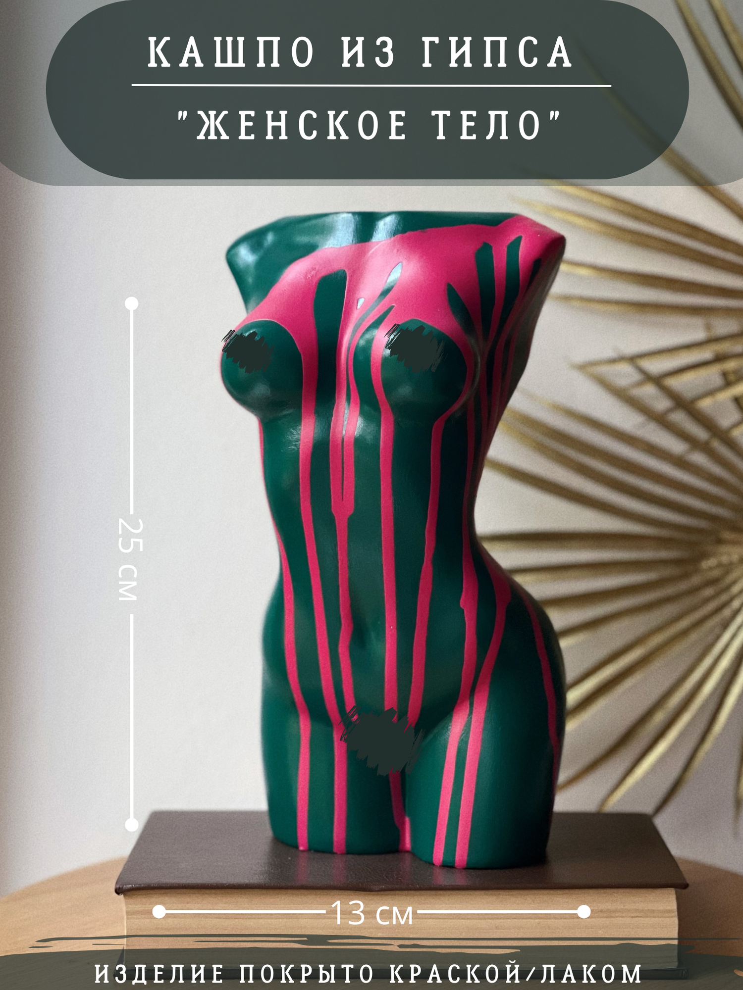 Отзывы на Кашпо Женское тело декоративное, 25 см, гипс, зеленый с розовым