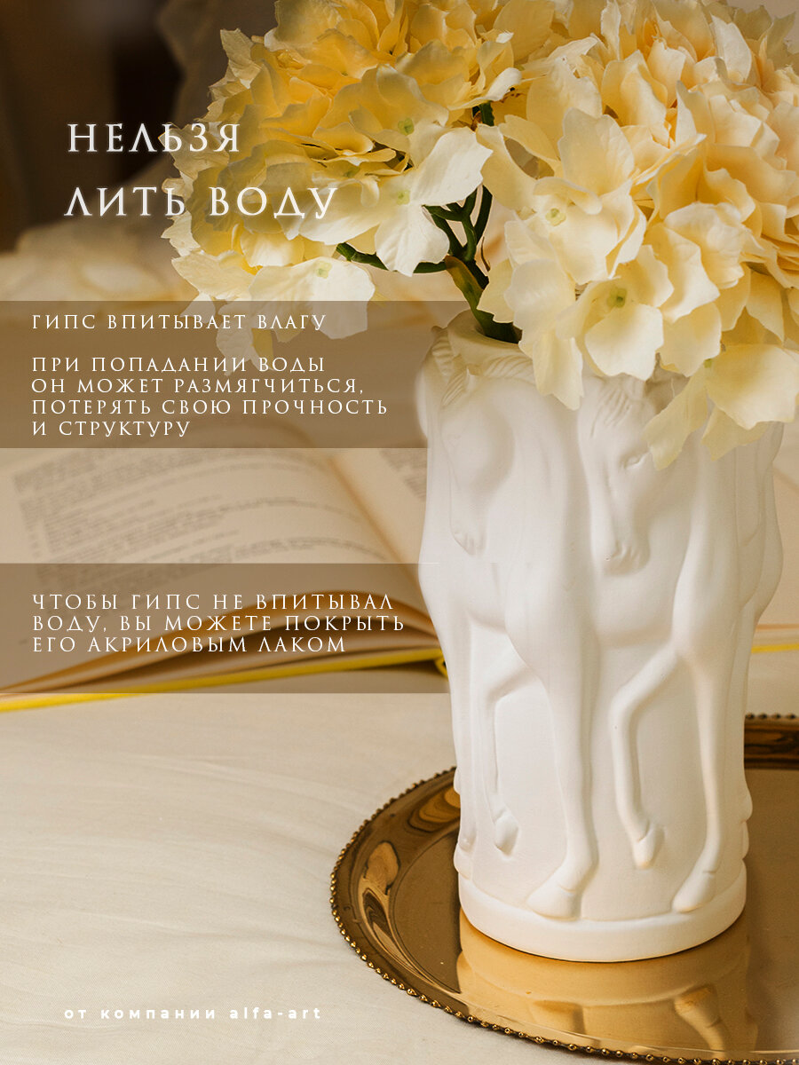 Декоративное кашпо для цветов из гипса Лошади 22 см белое информация: