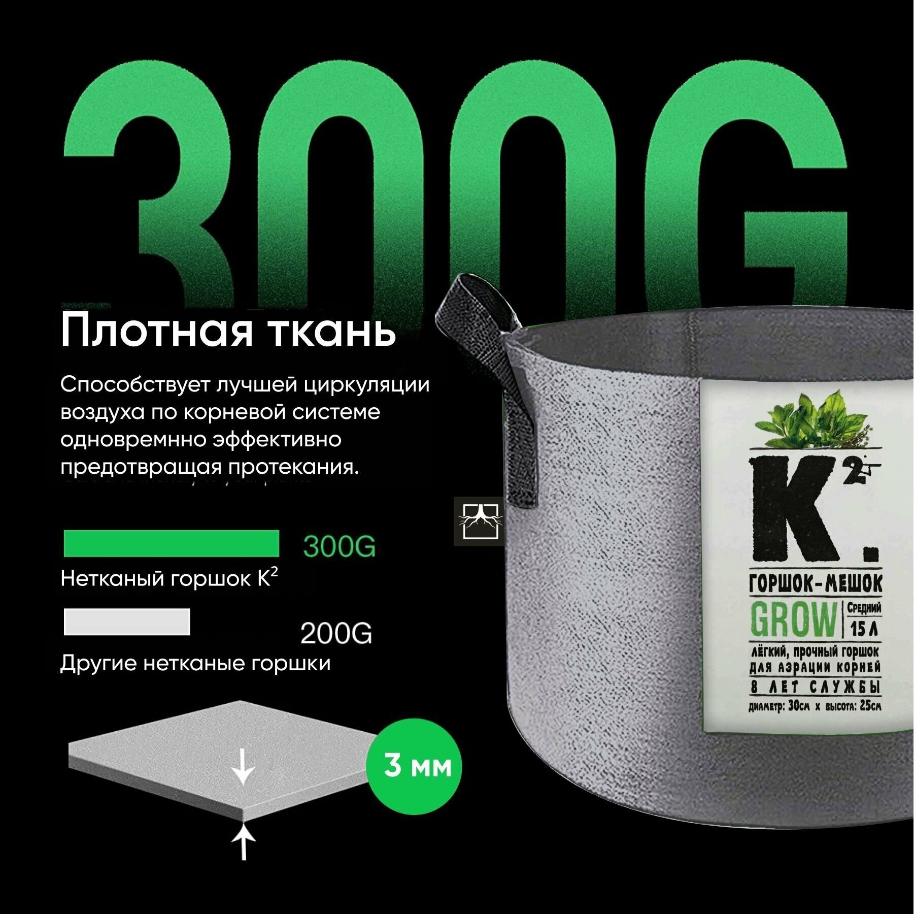 Серый Плотный Тканевый Мешок Горшок с ручками, 25л, 1 штука (гроубег, гроубэг), для растений и цветов информация: