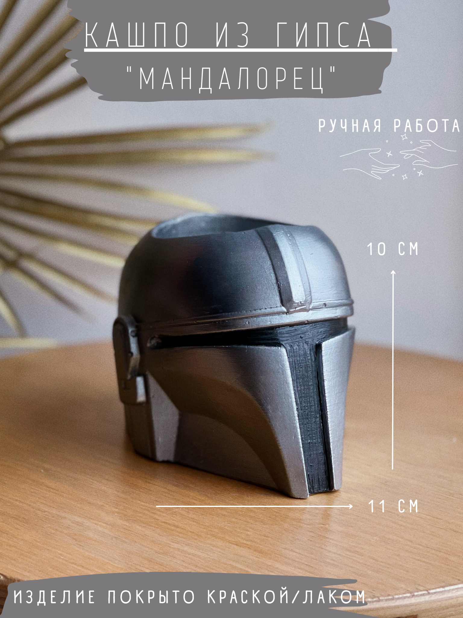 Отзывы на Кашпо из гипса Мандалорец, 10 см, органайзер статуэтка, серебристо-черный
