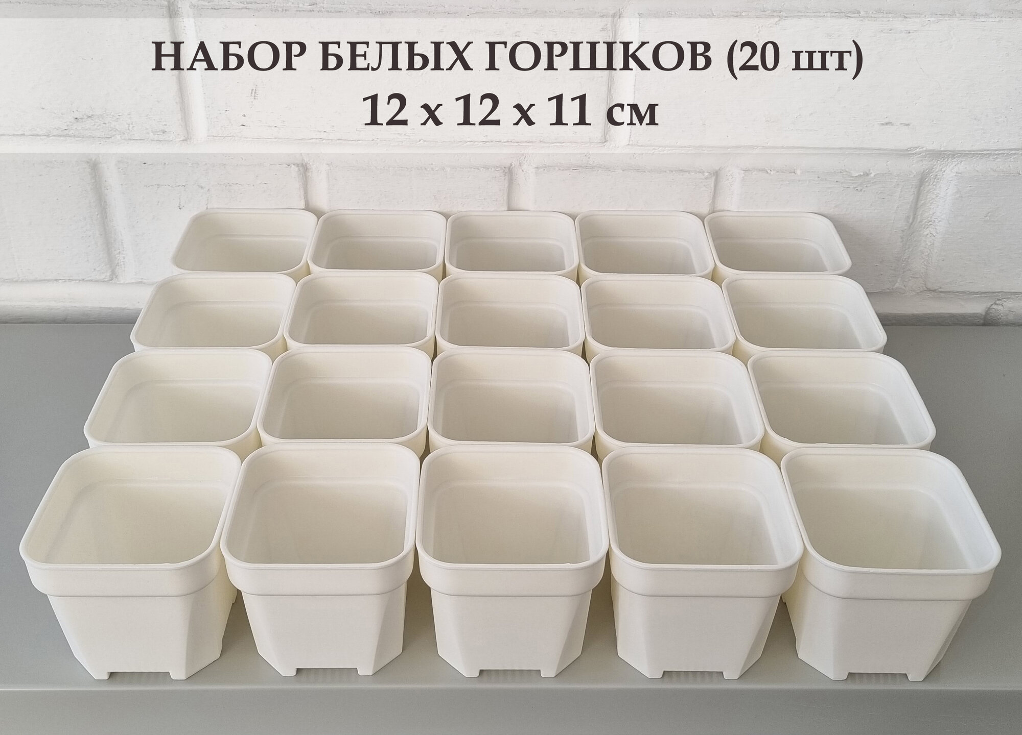 Белые горшки для суккулентов, кактусов и других растений. Набор из 20 штук. Размеры 12*11 см информация:
