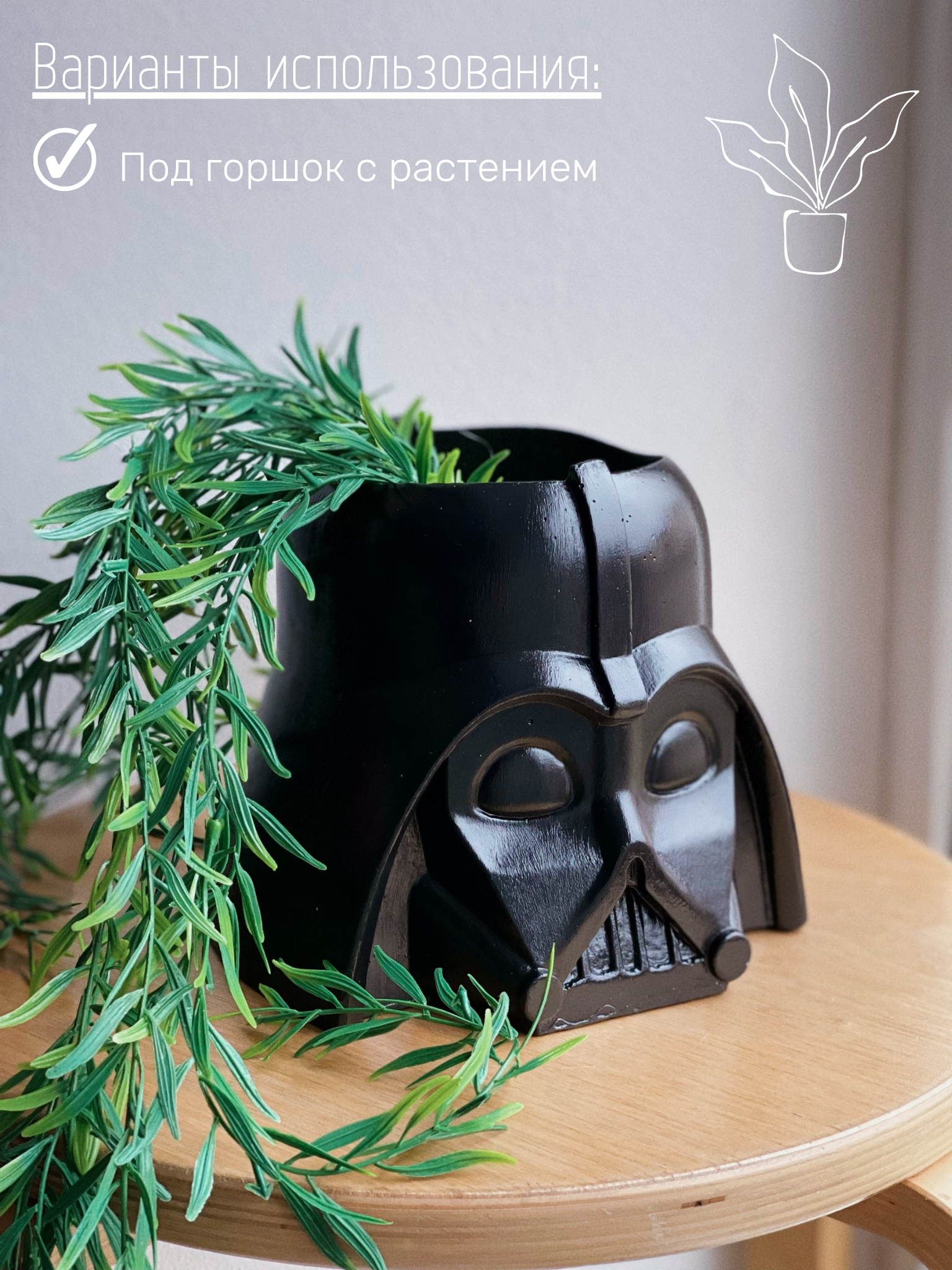 Кашпо из гипса Дарт Вейдер, 17 см, черный цвет информация: