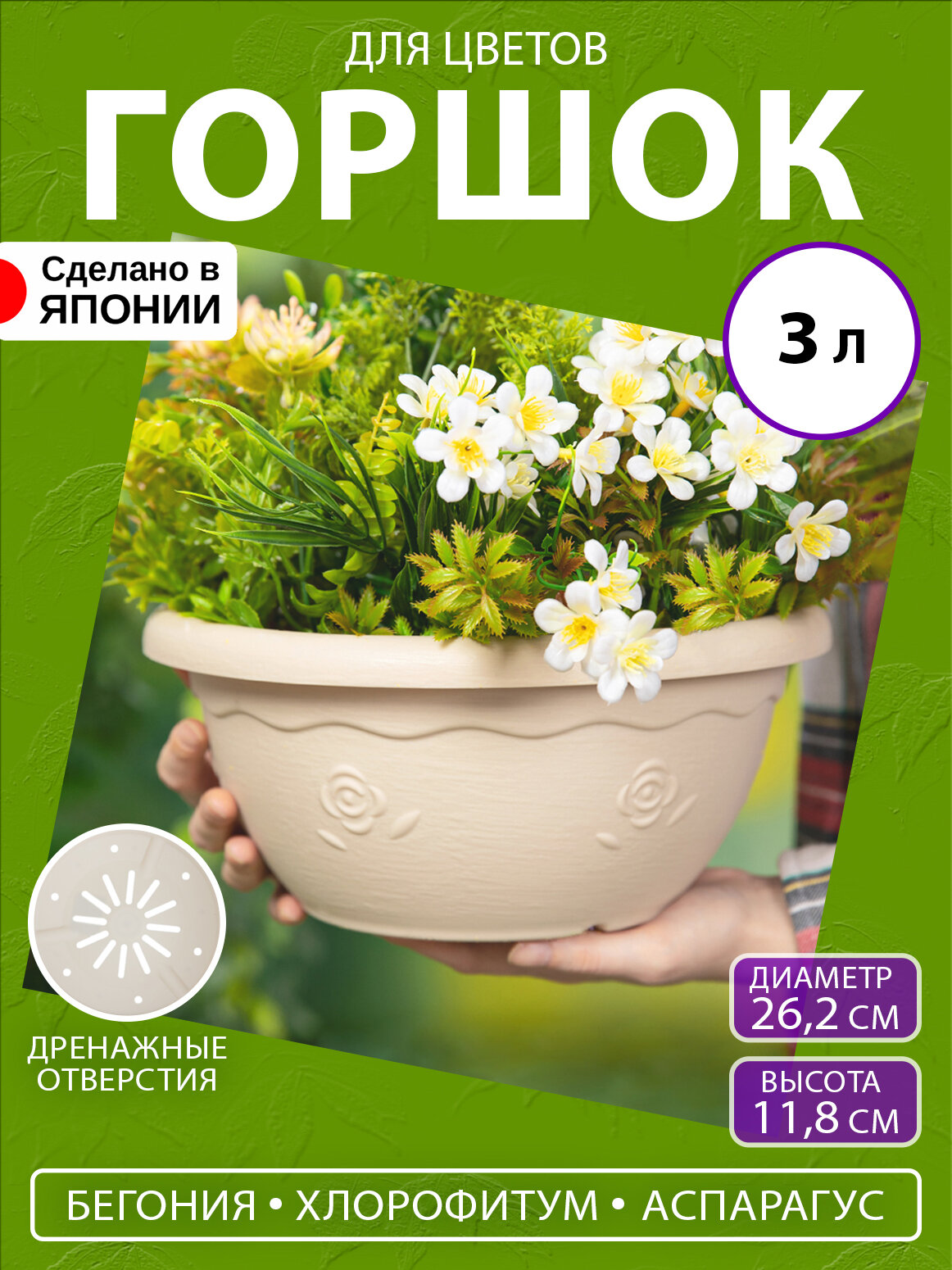 Горшок для цветов / Вазон круглый 3 л, Д30*11,5 см Yamato