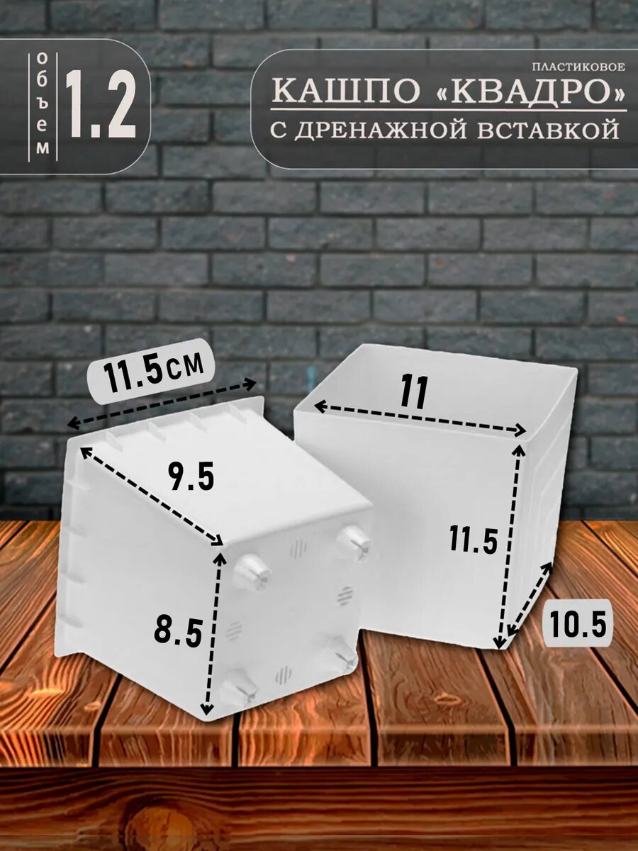 Горшок для цветов и Кашпо, Квадро 1.2 литра 2 шт информация: