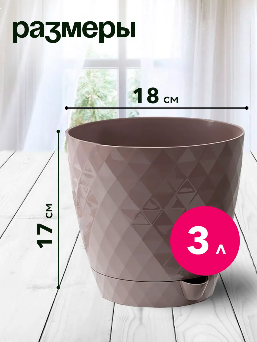 Горшок для цветов с прикорневым поливом 3л, набор из 3 штук «РУМБА» информация: