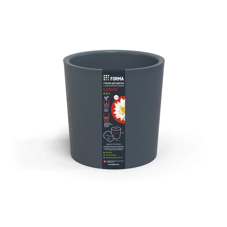 Горшок для цветов с дренажной вставкой Genius 6,6 л. Полимербыт 76605 (серый) информация: