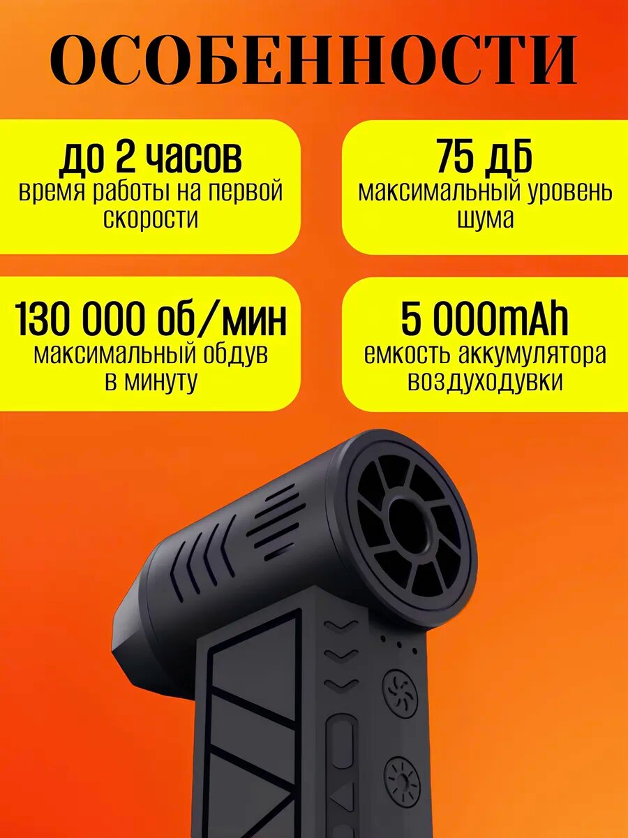 Сверхмощная воздуходувка для компьютера/электроники. Аккумуляторная, 51000об./мин, 68Вт