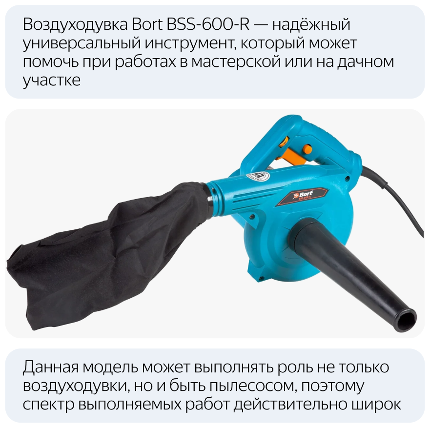 10 цен на Электрическая воздуходувка Bort BSS-600-R, 600 Вт, синий