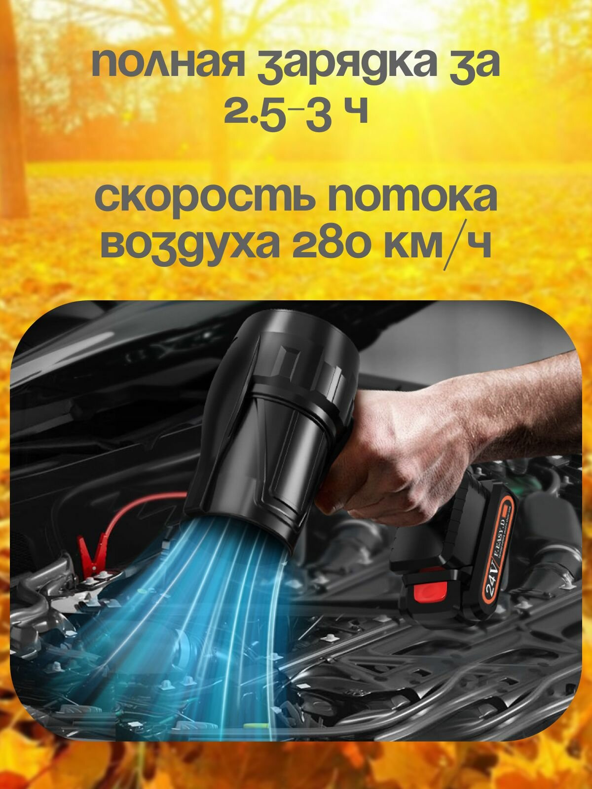 Портативная воздуходувка 1000 Вт 2 аккумулятора информация: