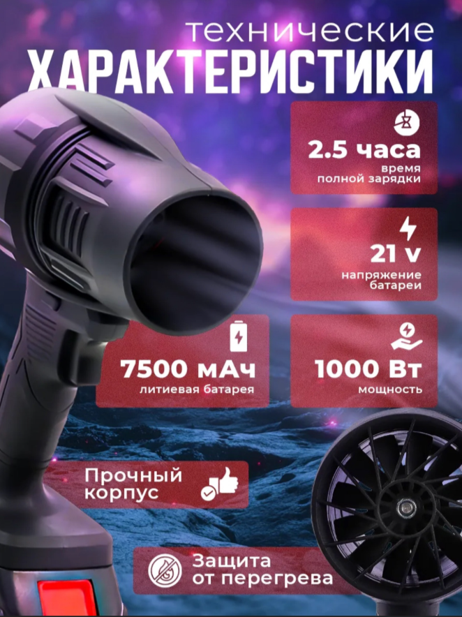 Мощная воздуходувка, беспроводная воздуходувка 1000Вт, воздуходувка в кейсе с 2 аккумуляторами информация: