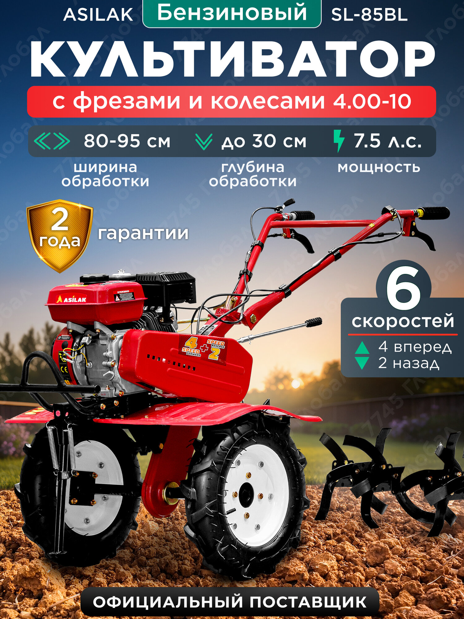 Культиватор бензиновый ASILAK SL-85BL с колесами 4.00-10 (AS2315-2) информация: