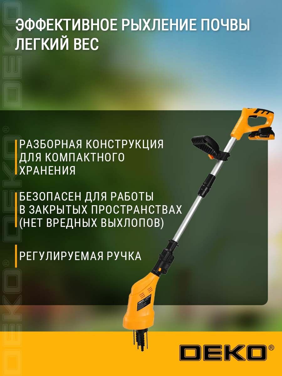 10 цен на Культиватор аккумуляторный DEKO DKET20Li, 20В, 1x2.0Ач