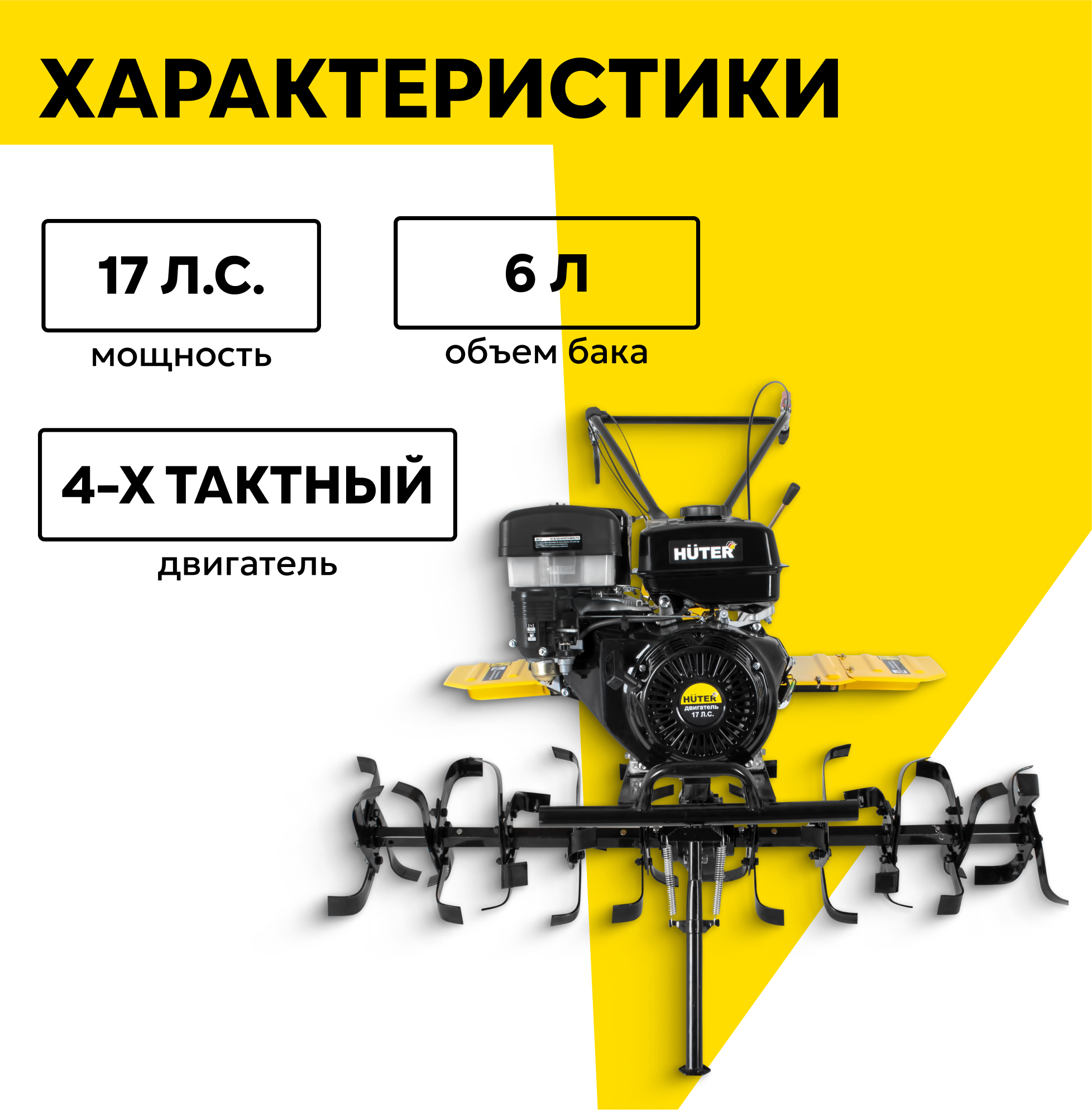 Сельскохозяйственная машина Huter МК-17000P, 17 л. с, четырехтактный, бензин, бак – 6 л, ширина – 140 см информация: