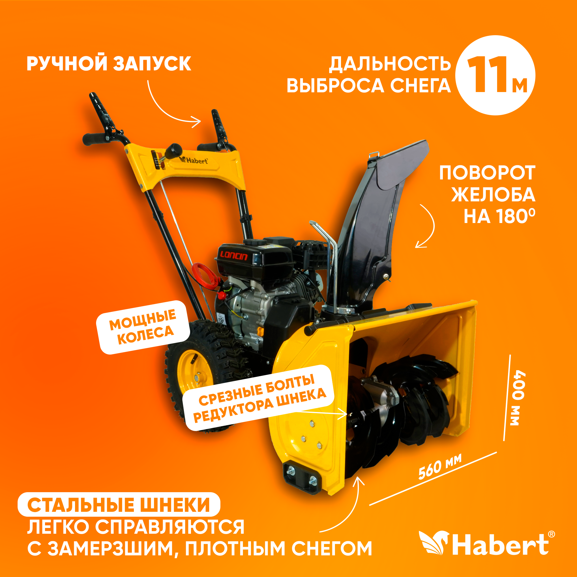 Отзывы на Снегоуборщик бензиновый Habert HBM22B (6,5лс, выброс 11м, передачи 4 вперед 1 назад, самоходный)