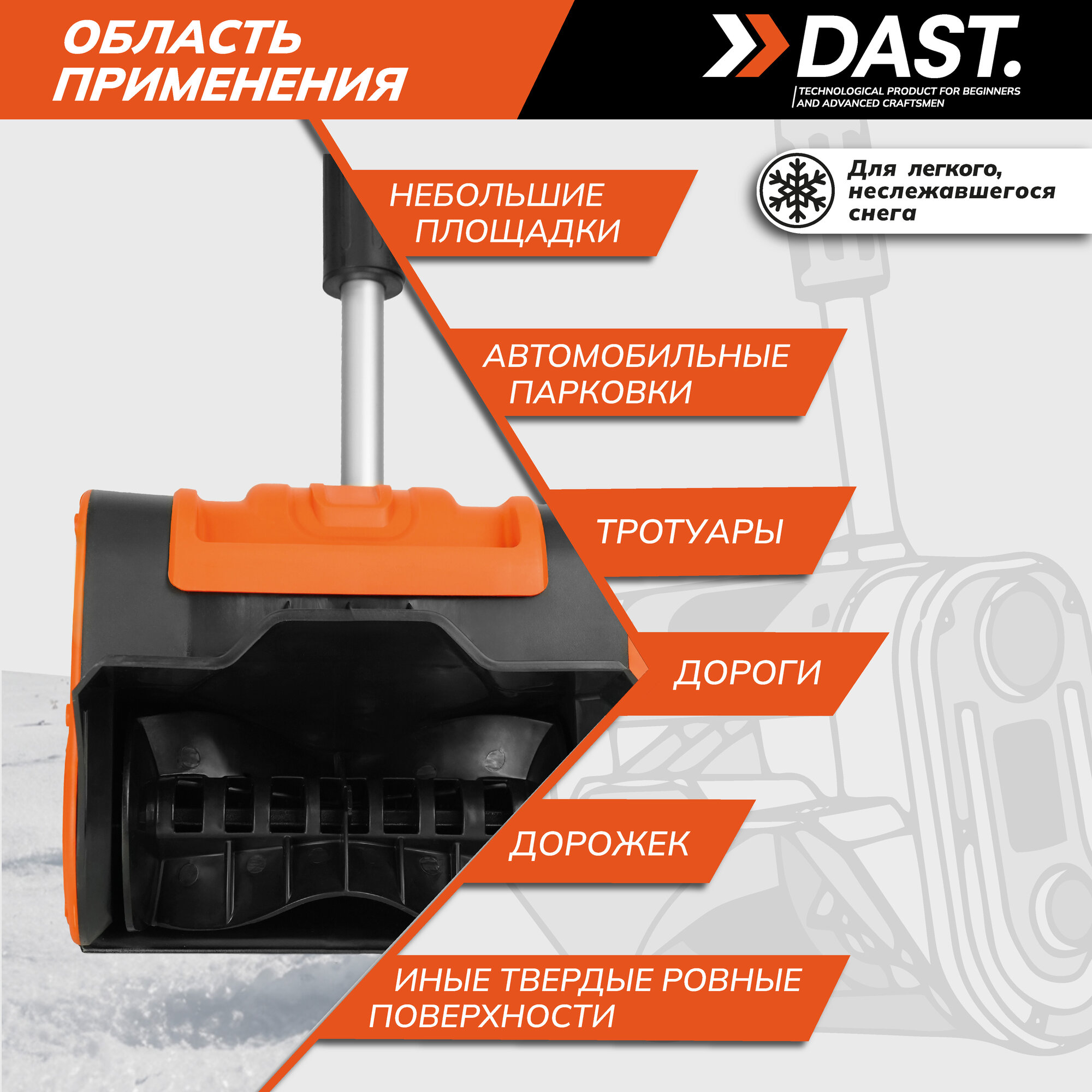 10 цен на Снегоуборщик аккумуляторный DAST 20В, ковш 25x15 см, 1 батарея 4Ач + ЗУ в комплекте