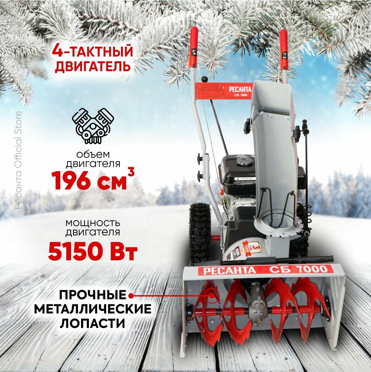 Снегоуборщик Ресанта СБ 7000, 7 л. с, 4 вперед/2 назад, самоходный информация:
