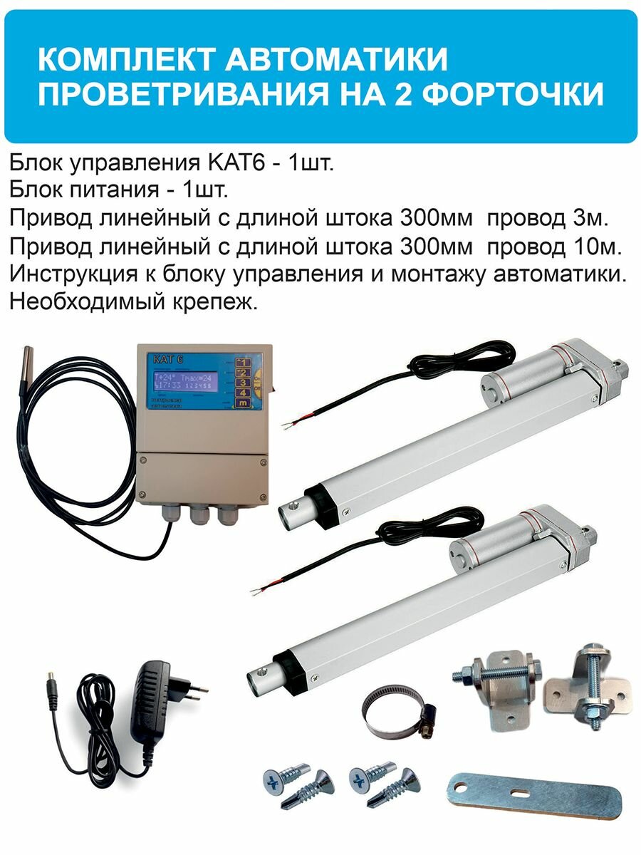 10 цен на Комплект автоматического проветривания КАТ 6, для теплицы, с датчиком влажности, и 2 линейных привода.