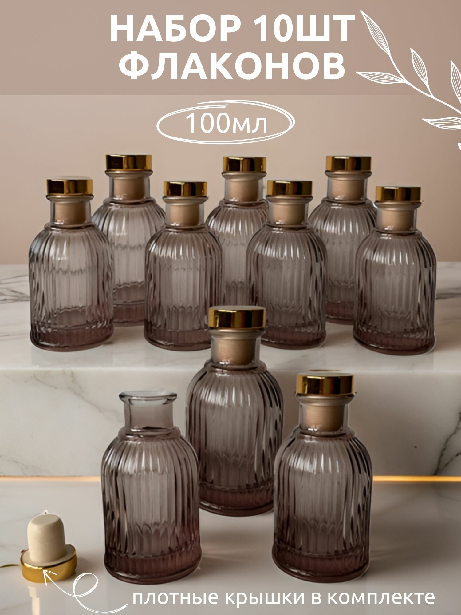 10 цен на Флакон 10 шт. 100мл. для диффузора, ваза для декора, пустой, стекло.
