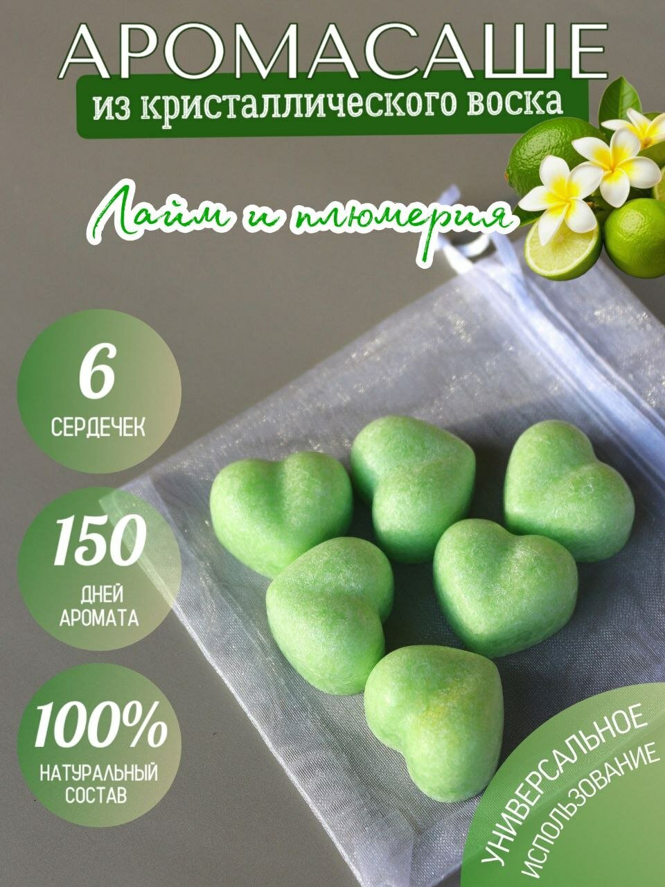 Отзывы на Саше ароматическое сердечки "Лайм и плюмерия" для шкафа и белья из кристаллического воска / Аромасаше Aurika Candles