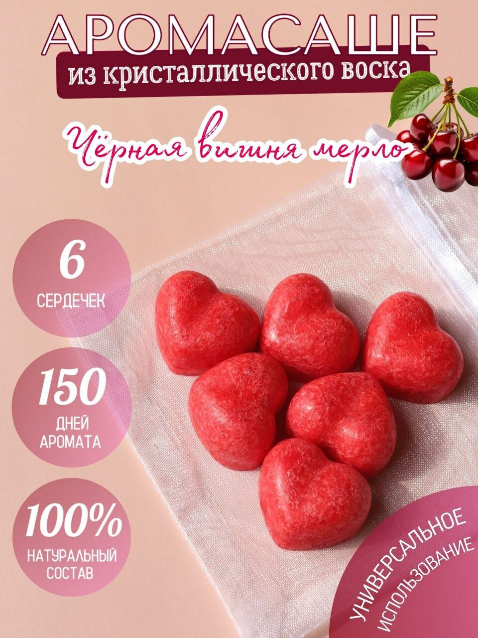 10 цен на Саше ароматическое сердечки "Чёрная вишня мерло" для шкафа и белья из кристаллического воска / Аромасаше Aurika Candles