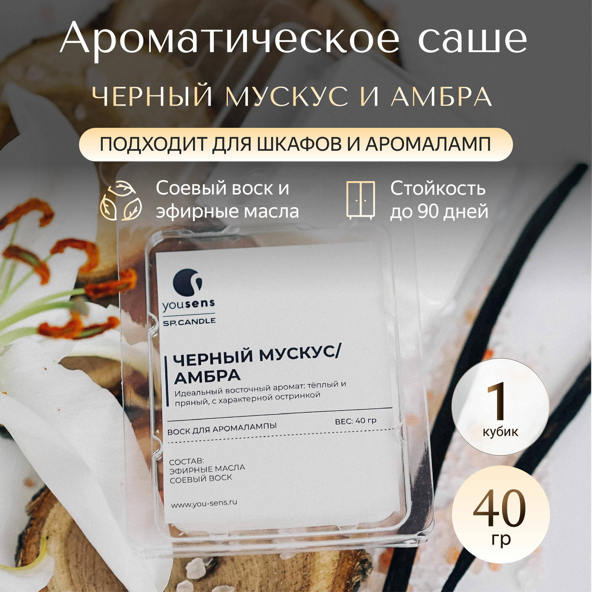 Отзывы на Саше Yousens "Чёрный мускус и амбра", соевый воск, для одежды и шкафа, 40г