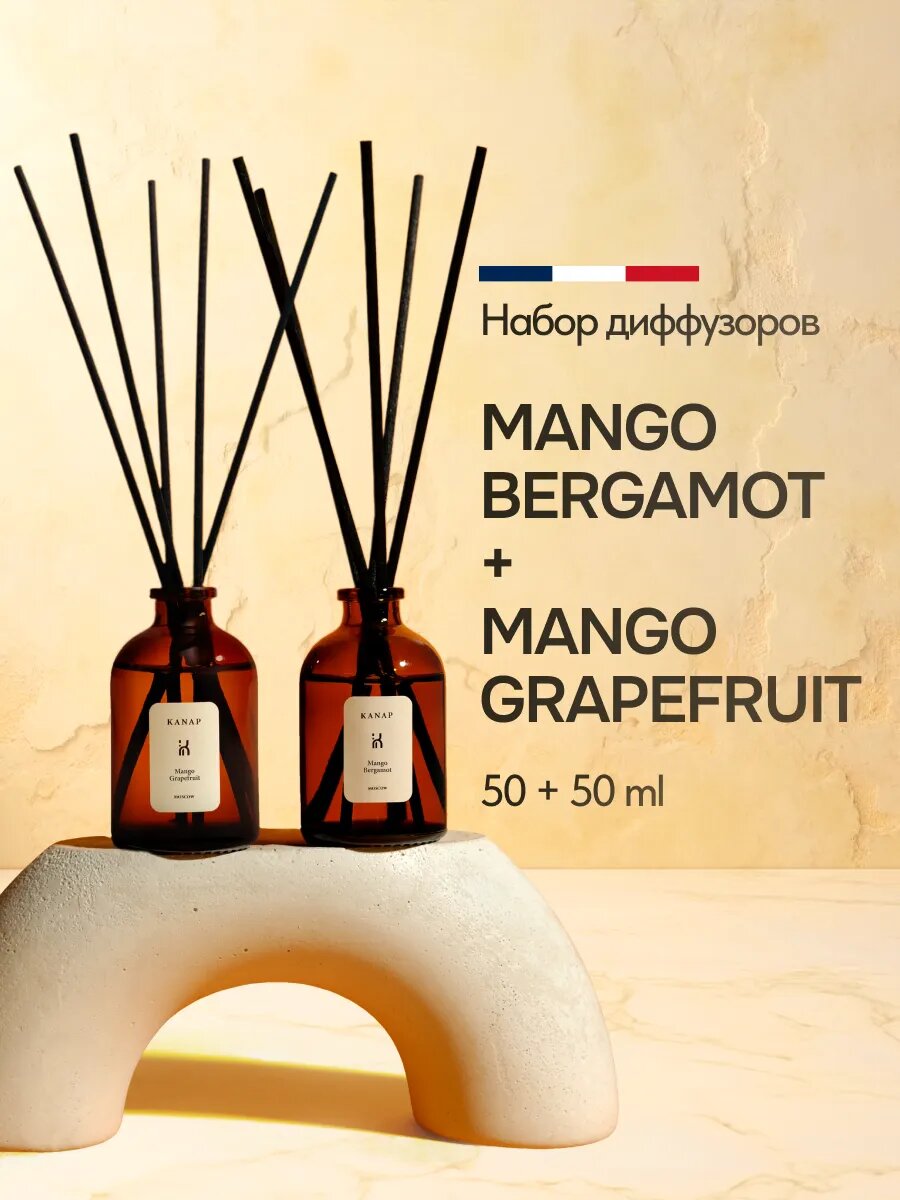 Ароматический диффузор для дома с палочками KANAP 50 мл+50 мл, набор 2 штуки информация: