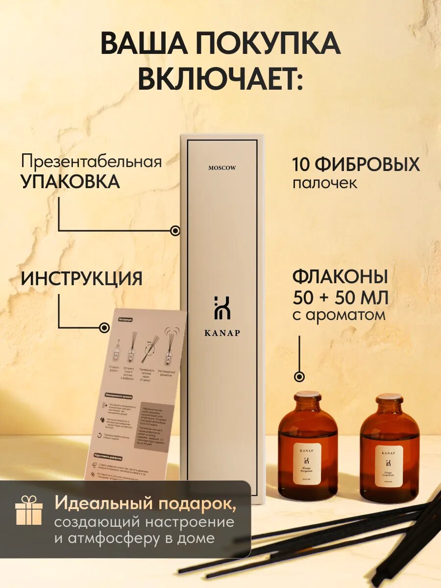 10 цен на Ароматический диффузор для дома с палочками KANAP 50 мл+50 мл, набор 2 штуки