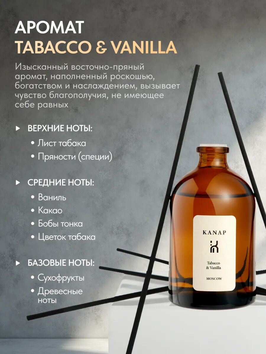 Ароматический диффузор для дома с палочками KANAP 100мл, ароматизатор Tobacco Vanille табак и ваниль информация: