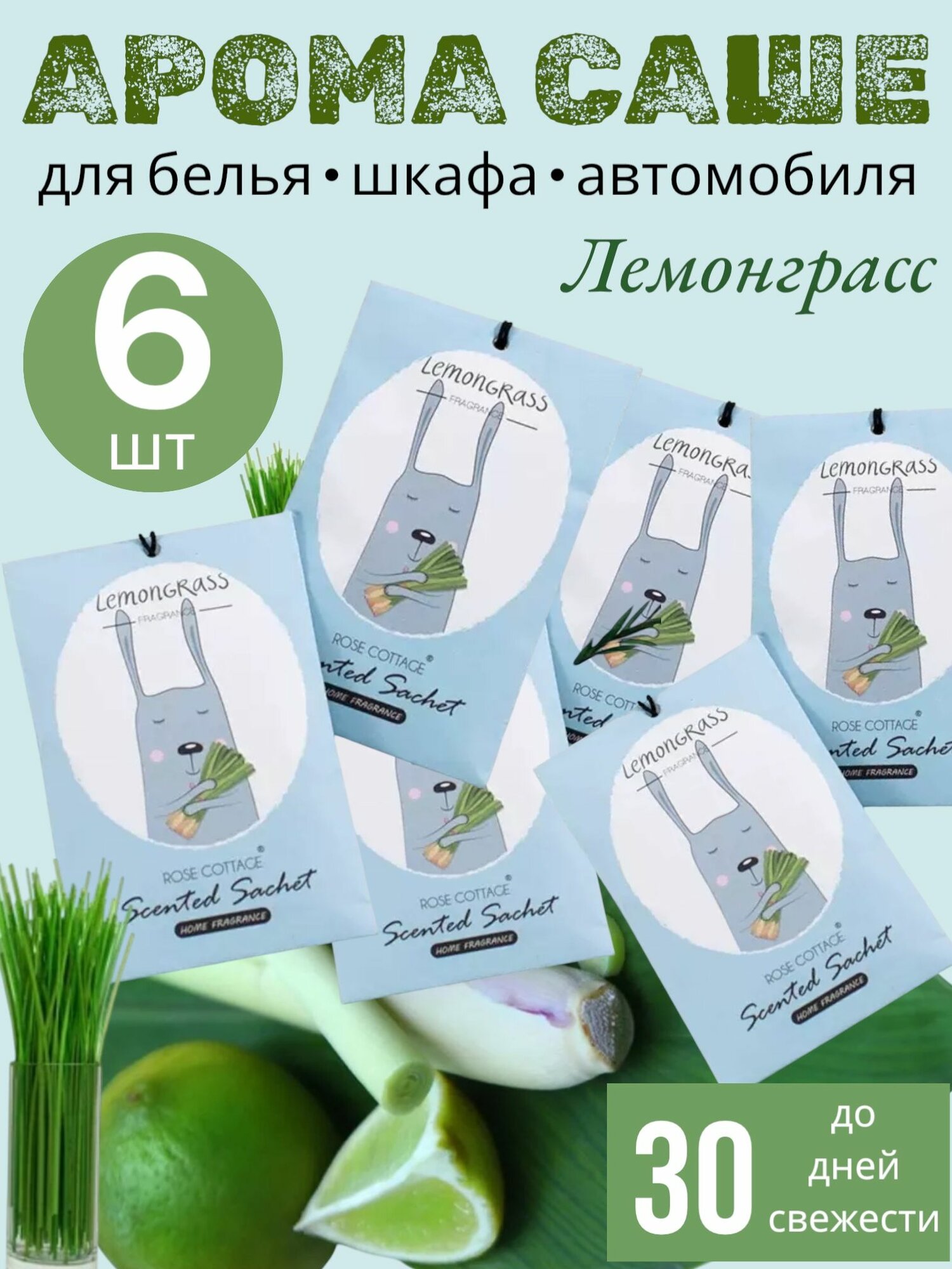 Саше ароматическое для белья в шкаф, в автомобиль. Лимонграсс. Комплект 6 шт. информация: