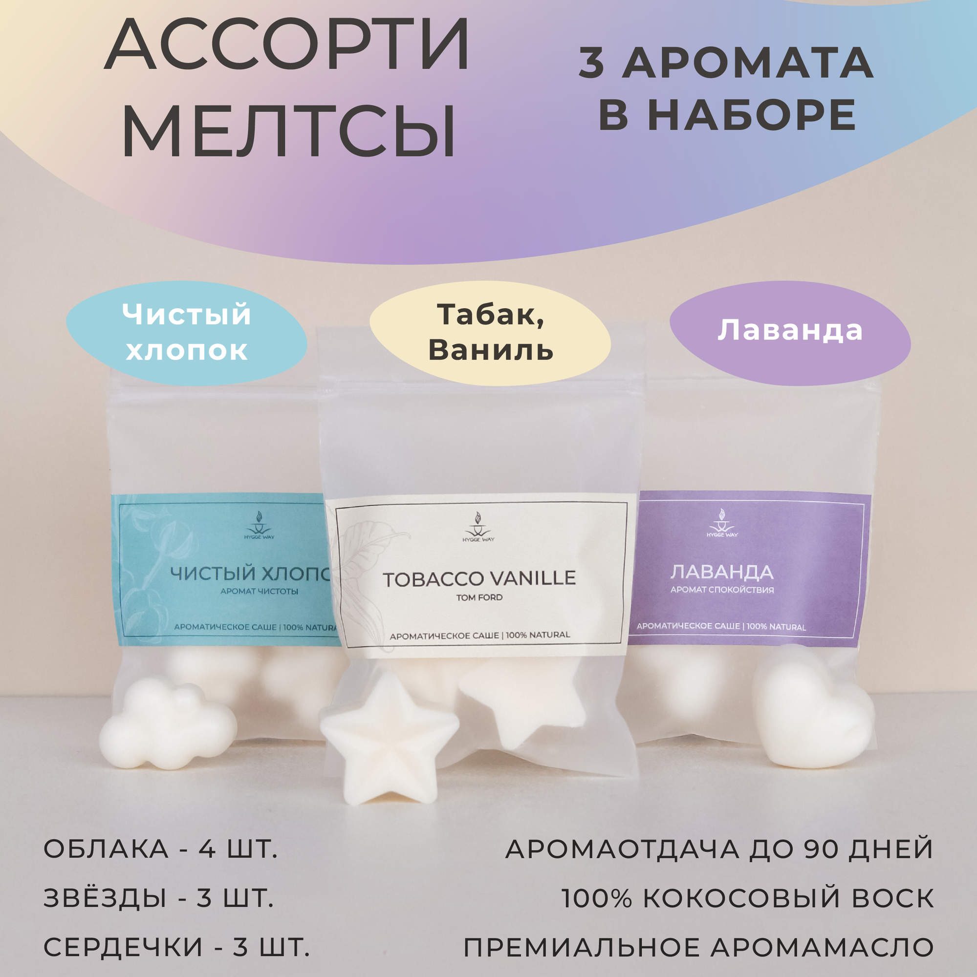Саше для шкафа и белья ароматическое "Hygge Way". Ароматизатор в шкаф и мелтсы для одежды "Ассорти АСМ-1" информация: