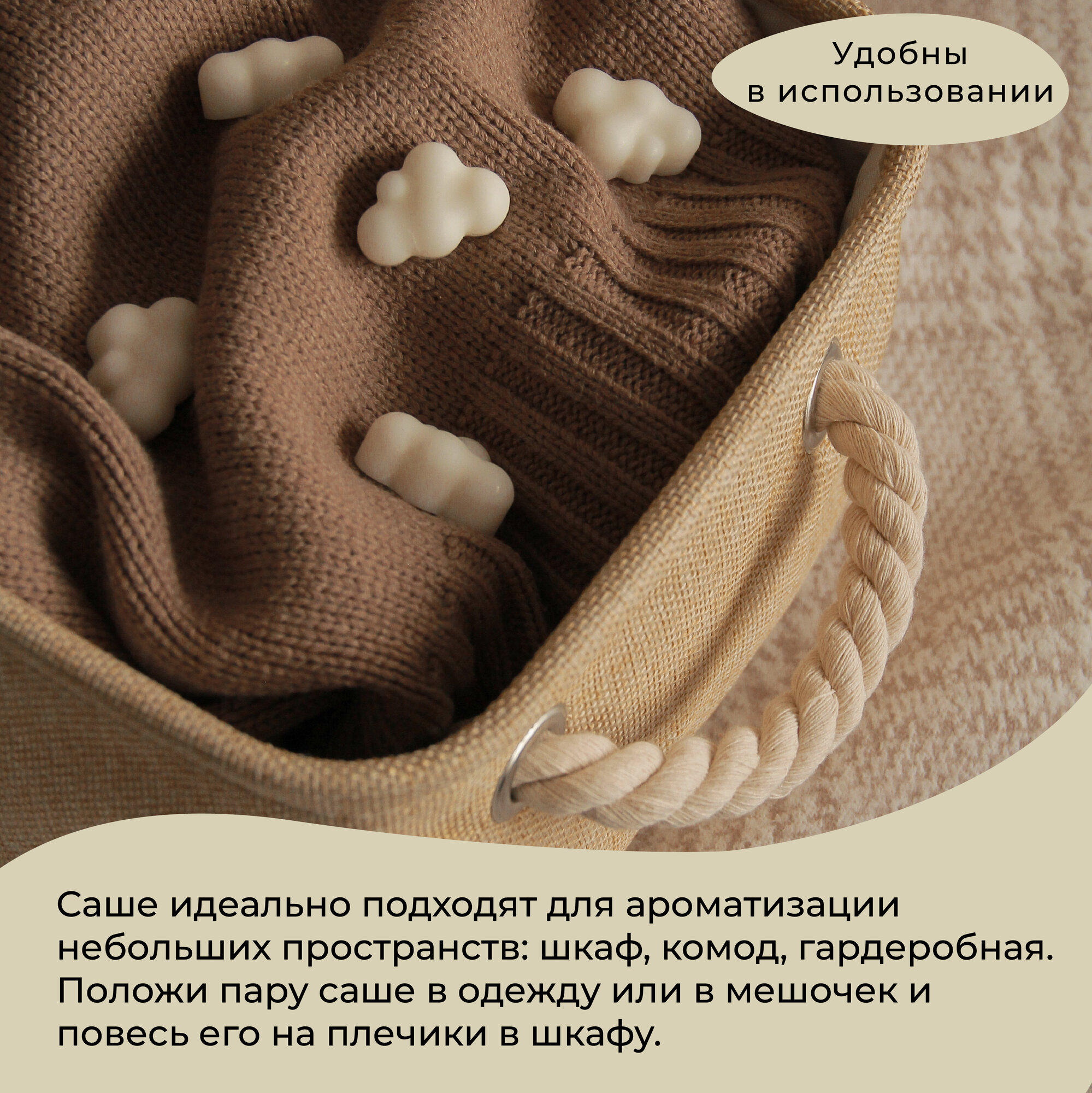 Саше для шкафа и белья ароматическое "Hygge Way". Ароматизатор в шкаф и мелтсы для одежды "АСС Чистый хлопок" информация: