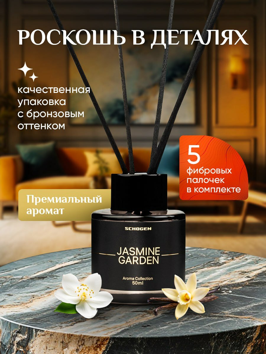 Аромадиффузор SCHOGEN Jasmine Garden, с палочками, аромат апельсин/жасмин/ваниль, 50 мл Аромадиффузор для дома 50 мл информация: