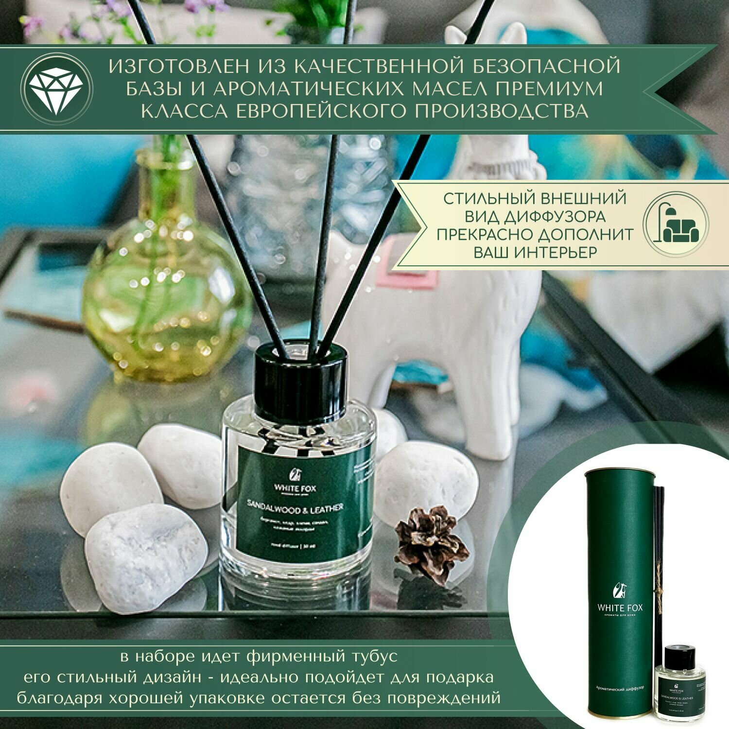 10 цен на Аромадиффузор / WHITE FOX / SANDALWOOD & LEATHER, аромат для дома с палочками