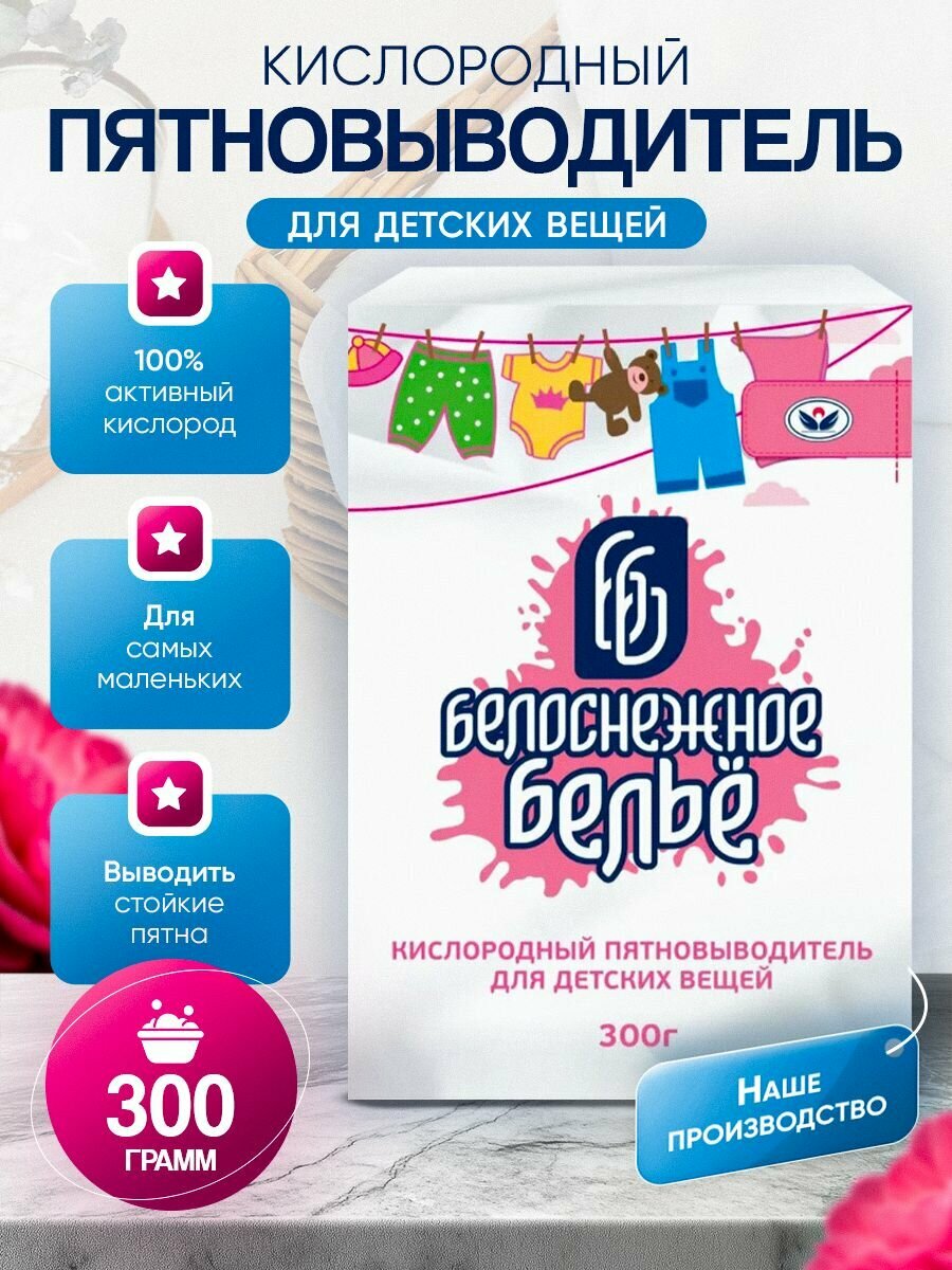 Пятновыводитель "Белоснежное бельё", для детских вещей, без хлора, 300 гр информация: