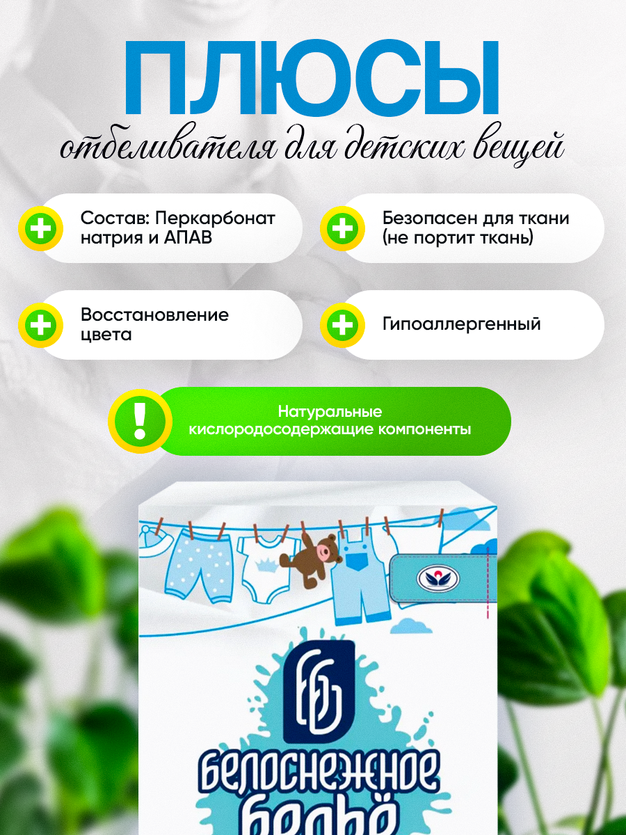 Отбеливатель "Белоснежное бельё", для детских вещей, без хлора, без запаха, 300 гр информация: