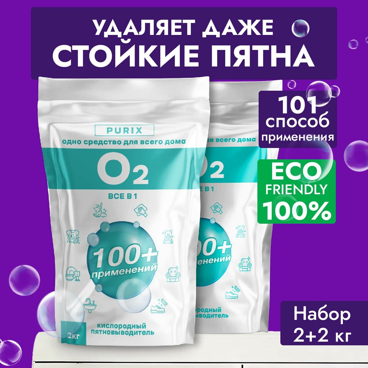 10 цен на O2 универсальный пятновыводитель порошок 2кг Кислородный отбеливатель 2шт